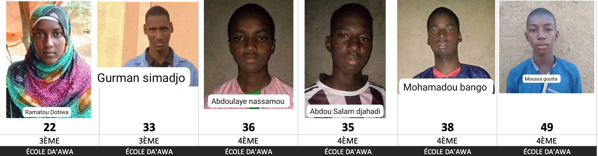 8 autres élèves et étudiants en faculté ou élèves en formation professionnelle à Niamey, Tahoua et Maradi